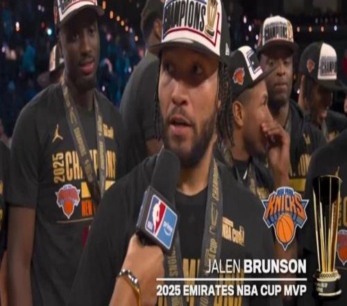 北京時間12月17日,尼克斯124-113逆轉戰勝馬刺,布倫森貢獻25分8助攻成為取勝功臣。布倫森憑借本屆杯賽的整體出色表現,當選NBA杯MVP成為歷史第3位獲得該榮譽的球員。