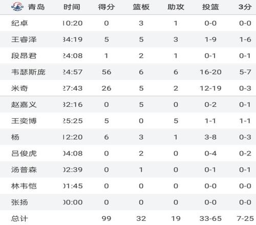 CBA常規(guī)賽,青島男籃vs同曦,這場(chǎng)比賽打的很激烈,但兩隊(duì)卻形成了鮮明對(duì)比,南京同曦這邊是外援和本土球員結(jié)合,球權(quán)分配很均勻,反觀青島男籃,球權(quán)基本集中在外援手中,全隊(duì)出手65次,外援就占了46次,最終全隊(duì)得到99分,其中3大外援狂砍88分,9名國(guó)內(nèi)球員僅得到可憐11分,而在這3大外援里,此人表現(xiàn)最為逆天,他在僅上場(chǎng)24分鐘的情況下,投籃20中16,狂砍56分6籃板6助攻,他就是韋瑟斯龐。