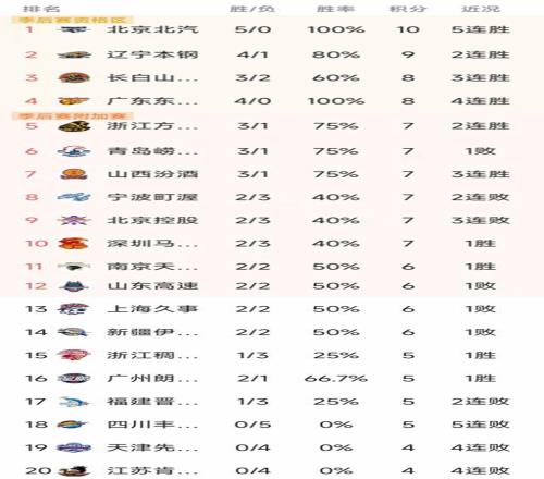 四川隊難求一勝,46分更是創造CBA歷史第二低得分,作為前總冠軍球隊,現在不僅遇到實力問題,連最基本的生存也無法保障,如何走出困境考驗俱樂部和籃協的工作。遼寧和吉林這兩支東北球隊高歌猛進,暫列第二和第三名。