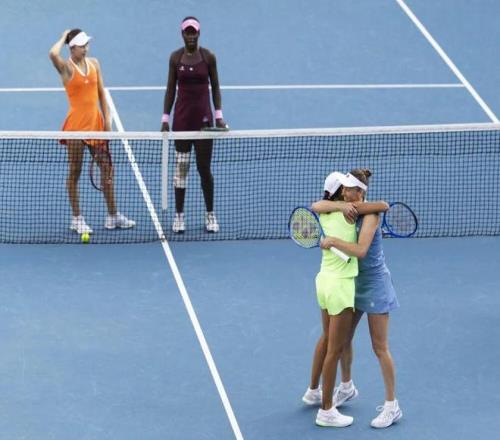 1月31日,張帥(右)/梅爾滕斯慶祝勝利。新華社記者 馬平 攝