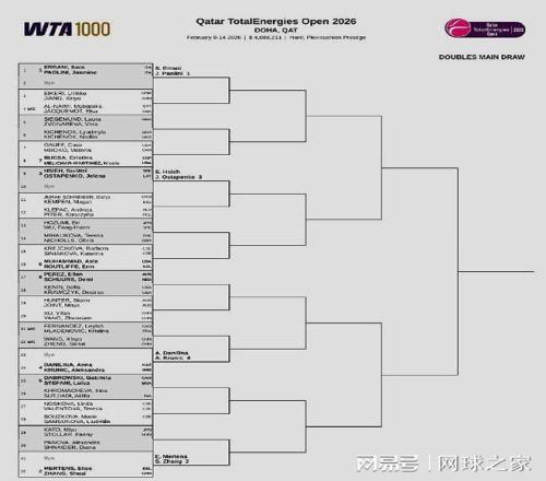 我們再來關注WTA1000多哈站。北京時間昨晚,這站女子1000賽公布了單雙打正賽簽表。單打前八大種子對位:上半區,斯瓦泰克--鮑里妮、阿尼西莫娃--斯維托麗娜;下半區,亞歷山德洛娃--高芙、米拉-安德列娃--萊巴金娜。中國一姐鄭欽文抽到了下半區,首戰前澳網冠軍肯寧。