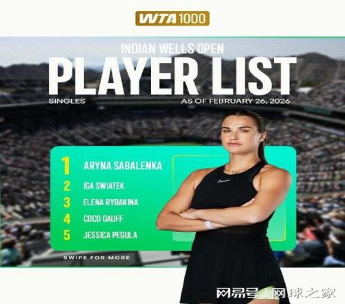 我們今天關注的重點是即將在3月4日-15日在美國加州進行的2026印第安維爾斯站(巴黎銀行公開賽),作為年度首項ATP和WTA均為1000級別的聯合賽事,今年男女單打分別由現任世界第一阿爾卡拉斯和薩巴倫卡領銜。
