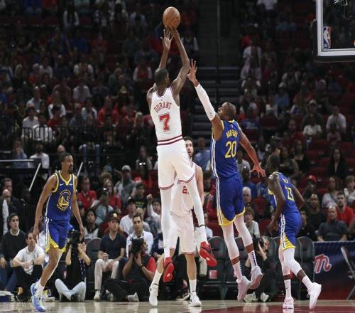 首節比賽,追夢格林中路空切上籃先拿2分,阿門加速突破滑翔上籃,梅爾頓打進2+1,小賈補籃造波姐犯規罰球拿2分,梅爾頓自投自搶補籃拿2分,阿門切內線虛晃一槍放籃拿2分,霍福德拋投打進,波姐靠著申京上籃打進,火箭接連不中,霍福德弧頂3分命中,勇士一波后領先了8分!杜蘭特飆進3分,梅爾頓中投還進,杜蘭特招牌中投再進,格林撅腚3分飆進,梅爾頓變向回拉干拔3分,勇士22-11領先,打停火箭!比賽回來,杜蘭特助攻卡佩拉吃餅,謝潑德中投穩穩命中,斯潘塞空切拿2分,奧科吉接球速射3分命中,斯潘塞靠著謝潑德上籃打進,火箭頻頻3分打鐵,波斯特助攻內特威廉姆斯上籃打進!首節打完,勇士30-20領先火箭!杜蘭特5中2,得到5分,表情沮喪!申京首節3中0,0分1籃板!