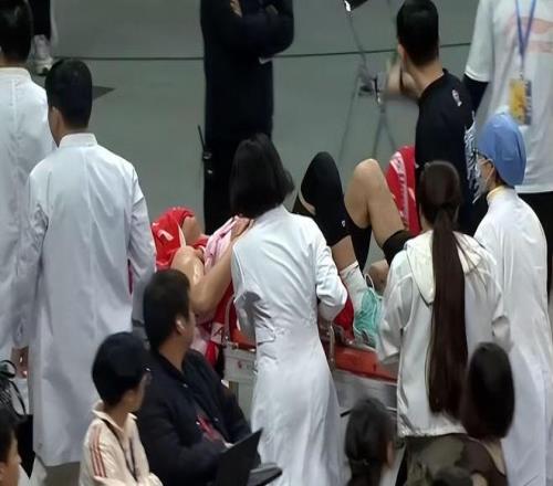 徐昕毫無防備,當場彎腰跪地,雙手死死按壓疼痛部位,臉色瞬間慘白,呼吸急促,無法自主起身。隊醫再次緊急進場,對其進行針對性檢查與冰敷處理。