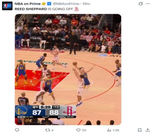 上半場打完謝潑德16分鐘,8中5,三分4中1,拿到11分3籃板3助攻,他在場是+7,但上半場打完火箭是落后勇士的。