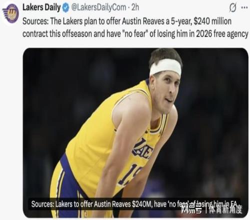 今日,《湖人日報》刊載了一篇題為《消息人士透露,湖人計劃在今年休賽期為奧斯汀·里夫斯提供一份5年2.4億美元的合同,且“無懼”其于2026年自由球員市場離隊風(fēng)險》的文章,具體內(nèi)容如下: