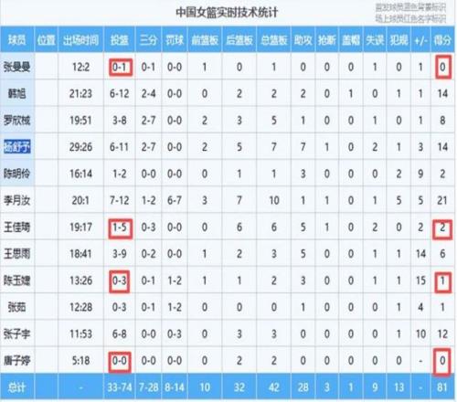 內線表現高光,但是,中國女籃的外線卻出現了明顯的短板,尤其新人表現拉胯。首發控衛張曼曼全場0分0助攻,王佳琦、陳玉婕合砍僅3分,三人外線合計9投1中、三分5中0;鋒線新人唐子婷出場7分鐘,0分入賬,攻防兩端存在感薄弱。顯然,中國女籃這些新的“血液”,沒有起到作用。