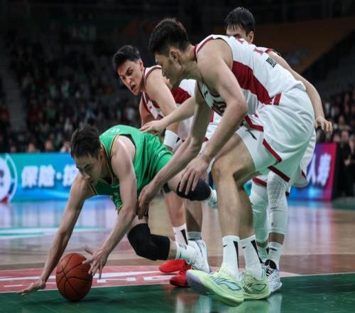3月13日,遼寧本鋼隊球員趙繼偉(右二)在比賽中拼搶。新華社記者 潘昱龍 攝