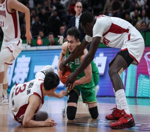 3月13日,遼寧本鋼隊球員李曉旭(右)在比賽中拼搶。新華社記者 潘昱龍 攝